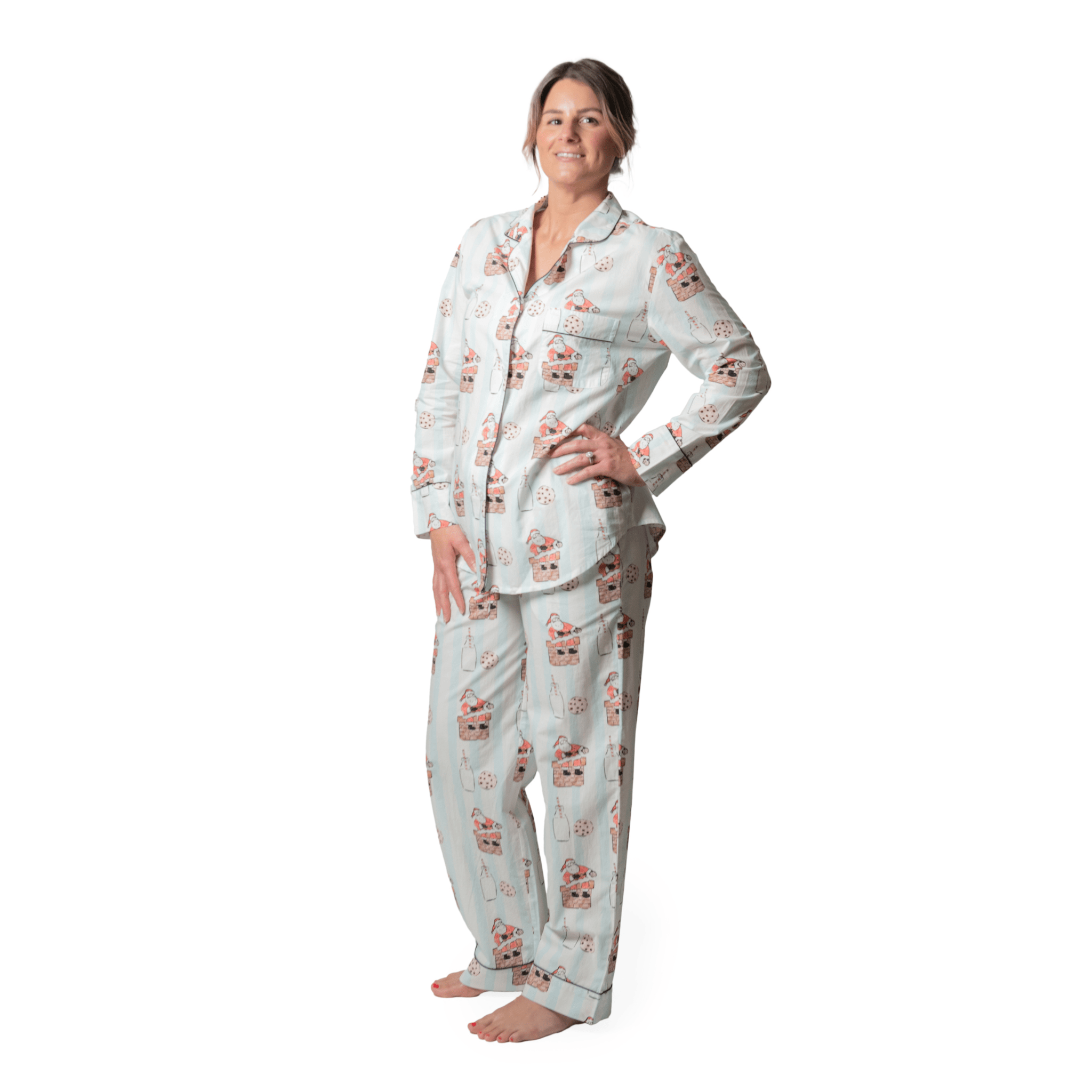 Cozy into the holiday spirit with the adorable, Milk & Cookies pajamas. The sweet, watercolour illustrations of Santa and his favourite snack might just help you stay up late enough to see the big guy in person! And if you don't make it, you'll be snoozing in comfy cotton pjs, ready for Christmas morning. A charming collaboration between Bon|Artis and Georgia-based painter, illustrator and designer Whimsy by Angela.