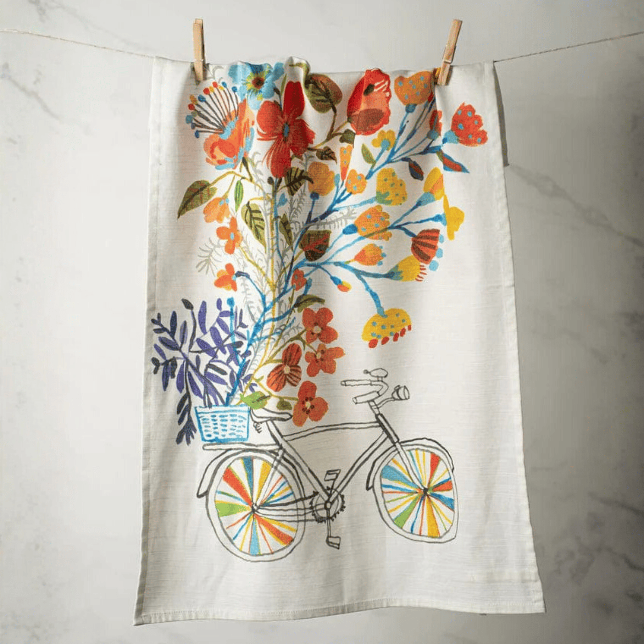 Bright and colourful flowers bloom from a vintage bike basket on this charming tea towel from Bon|Artis and Toronto-based painter, illustrator and designer Carolyn Gavin. Printed on 100% cotton, these delightful tea towels will brighten up any kitchen!