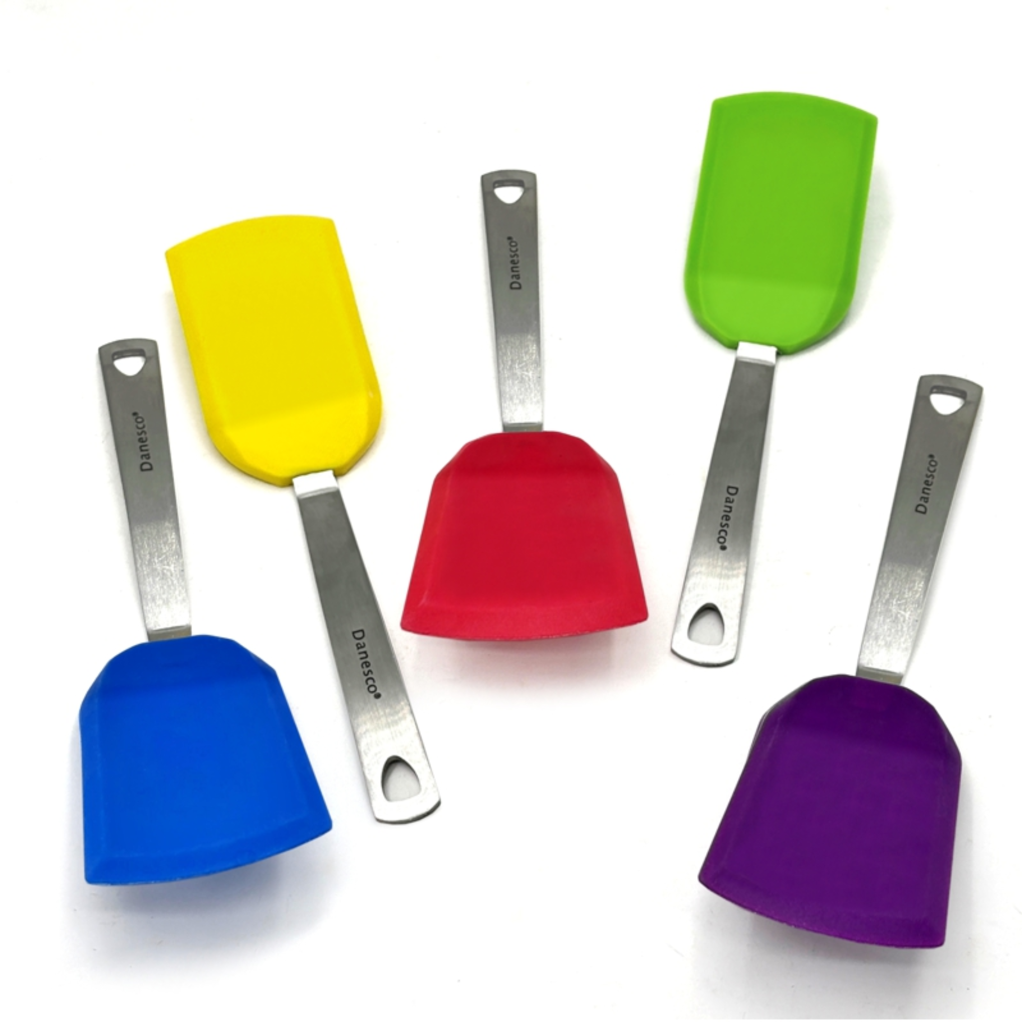 Add a pop of colour to your cooking with a silicone mini turner! Ideal for cookies, eggs, pancakes and more, the thin, flexible edges glide easily under food.