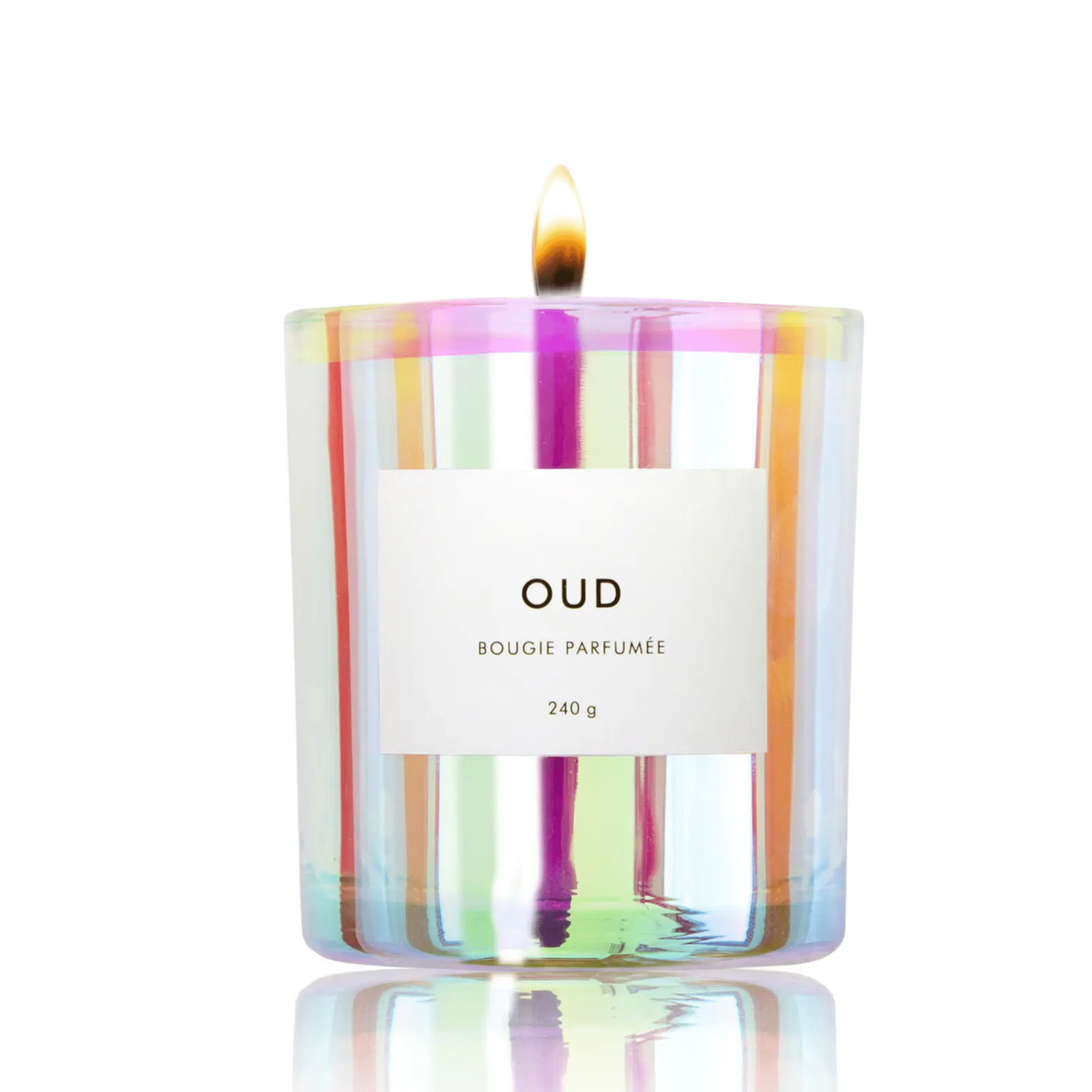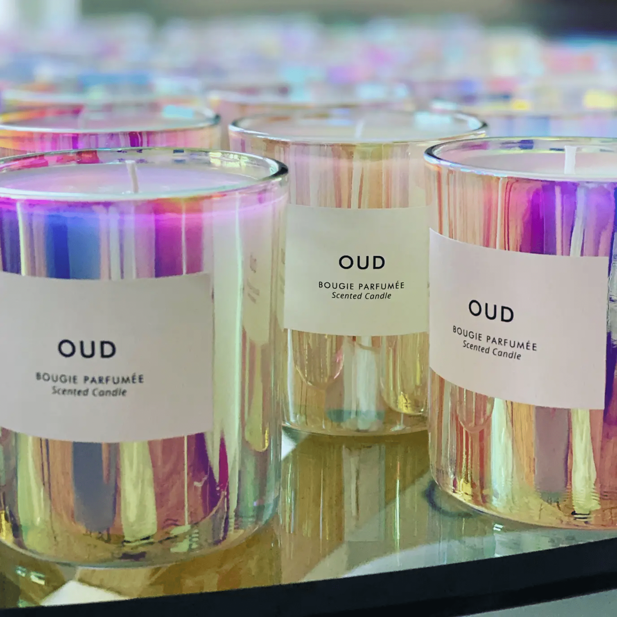 Conjure depth and mystery with the sweet, earthy and seductive Oud candle. Packaged in a whimsical, holographic jar, the flickering flame creates dreamy patterns that shift and change colour as the candle burns - a perfect complement to the richly nuanced oud scent. Made in Montreal, with non-toxic, clean-burning soy wax, Les Citadines candles make a gorgeous gift, or pick-me-up just for you!