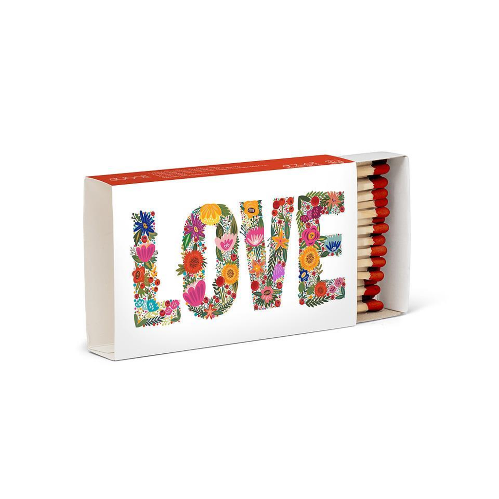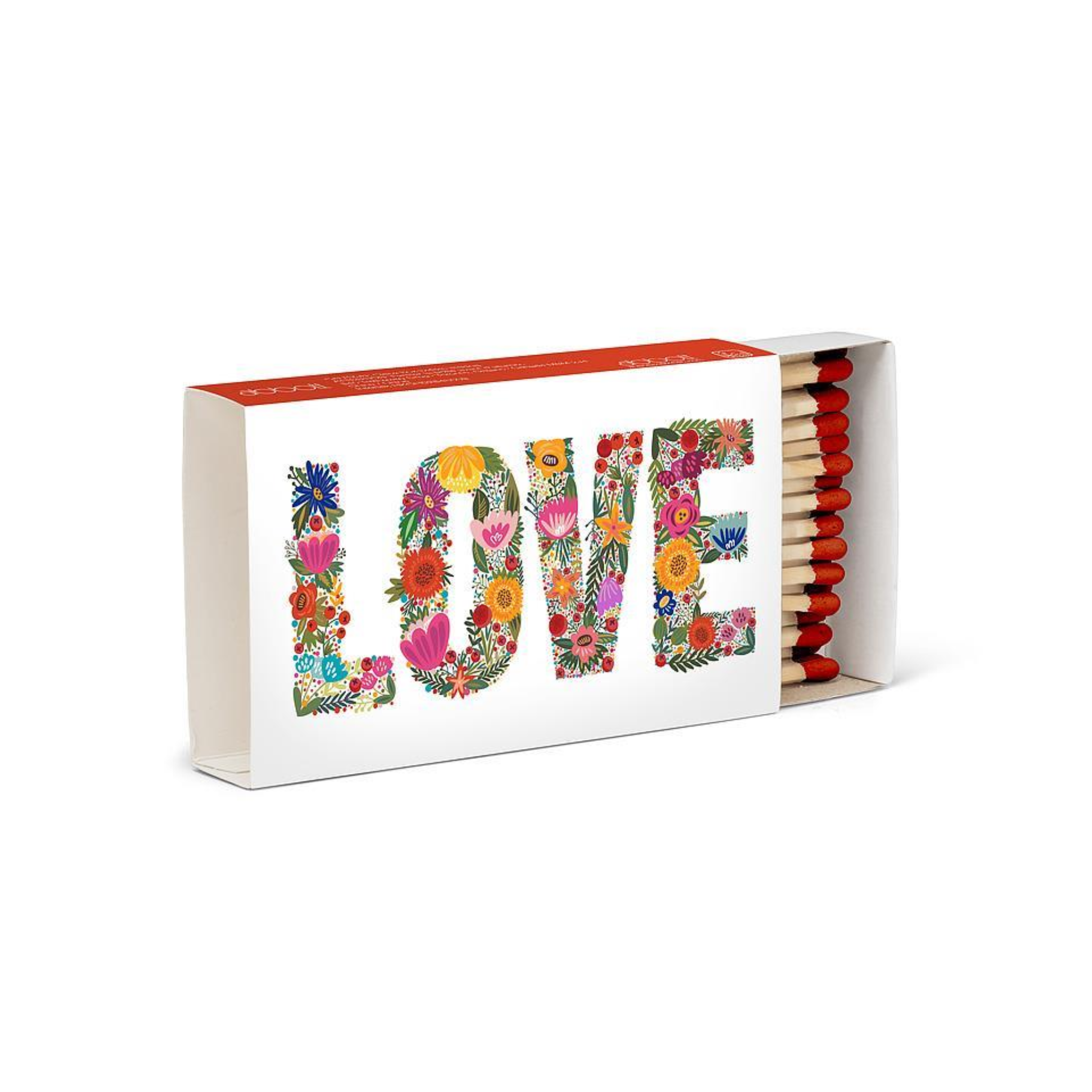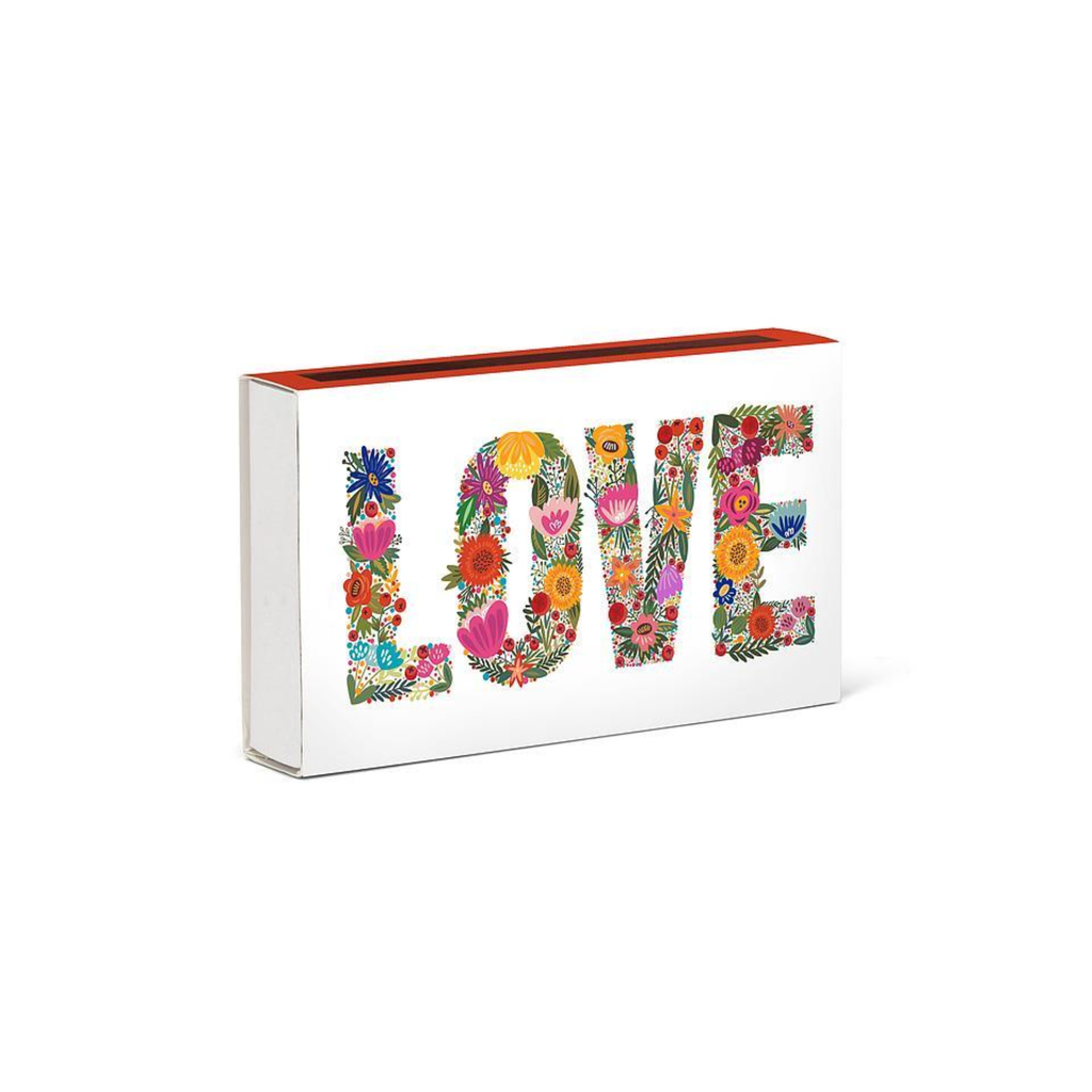 Fire up your favourite candles or fireplace with a bit of flowery flair! This chic white matchbox features "LOVE" written in colourful, illustrated blooms and includes 45 wooden matchsticks to get your fire started in style.