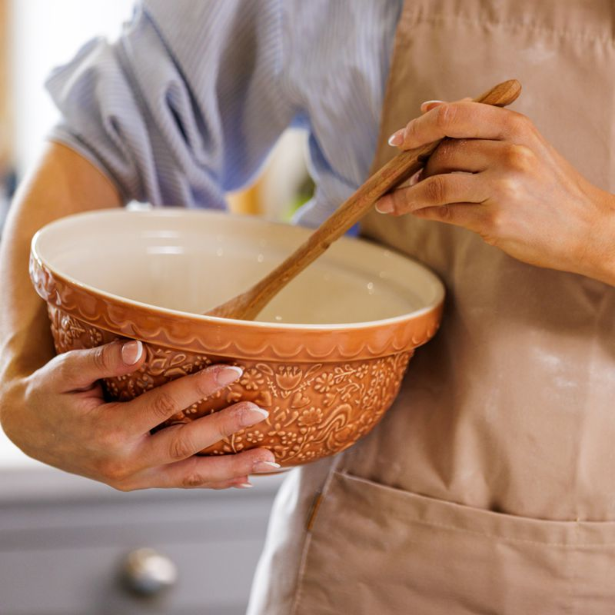 Bring a bit of farmhouse cheer to your countertop with the Mason Cash Home to Roost Mixing Bowl. Crafted from durable earthenware and finished with warm, embossed hen and cockerel motifs, it adds character as well as function. The classic bowl shape is easy to hold while mixing, whisking or prepping ingredients, and the textured exterior helps provide a secure grip. It is a versatile piece that works beautifully for everyday baking and kitchen tasks.