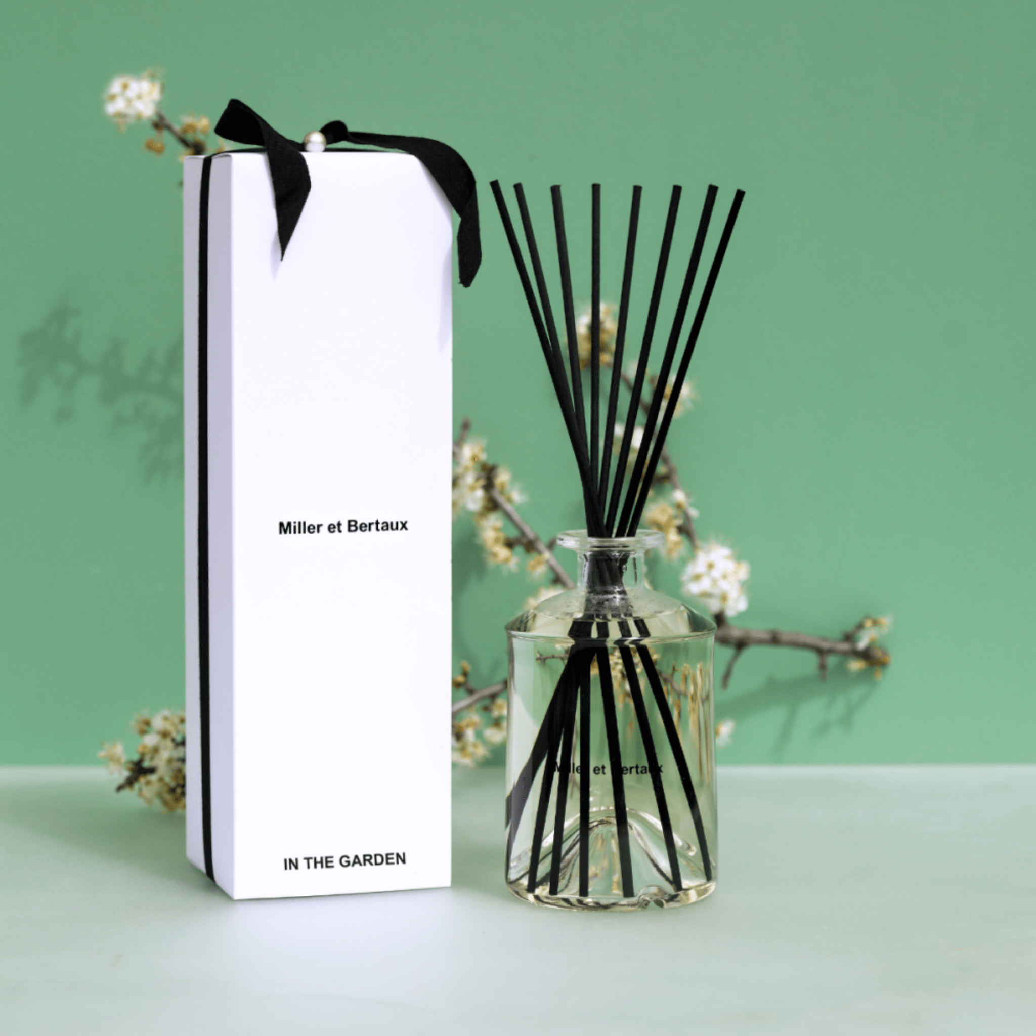 Bring the complex, layered scent of a verdant potager inside with Miller et Bertaux In the Garden diffuser. Revel in the dewy herbs and blooming flowers rooted in rich soil. This fresh, green fragrance abounds with rustic herbal and floral notes of verbena and anise, hyacinth flower, lily of the valley and moss.