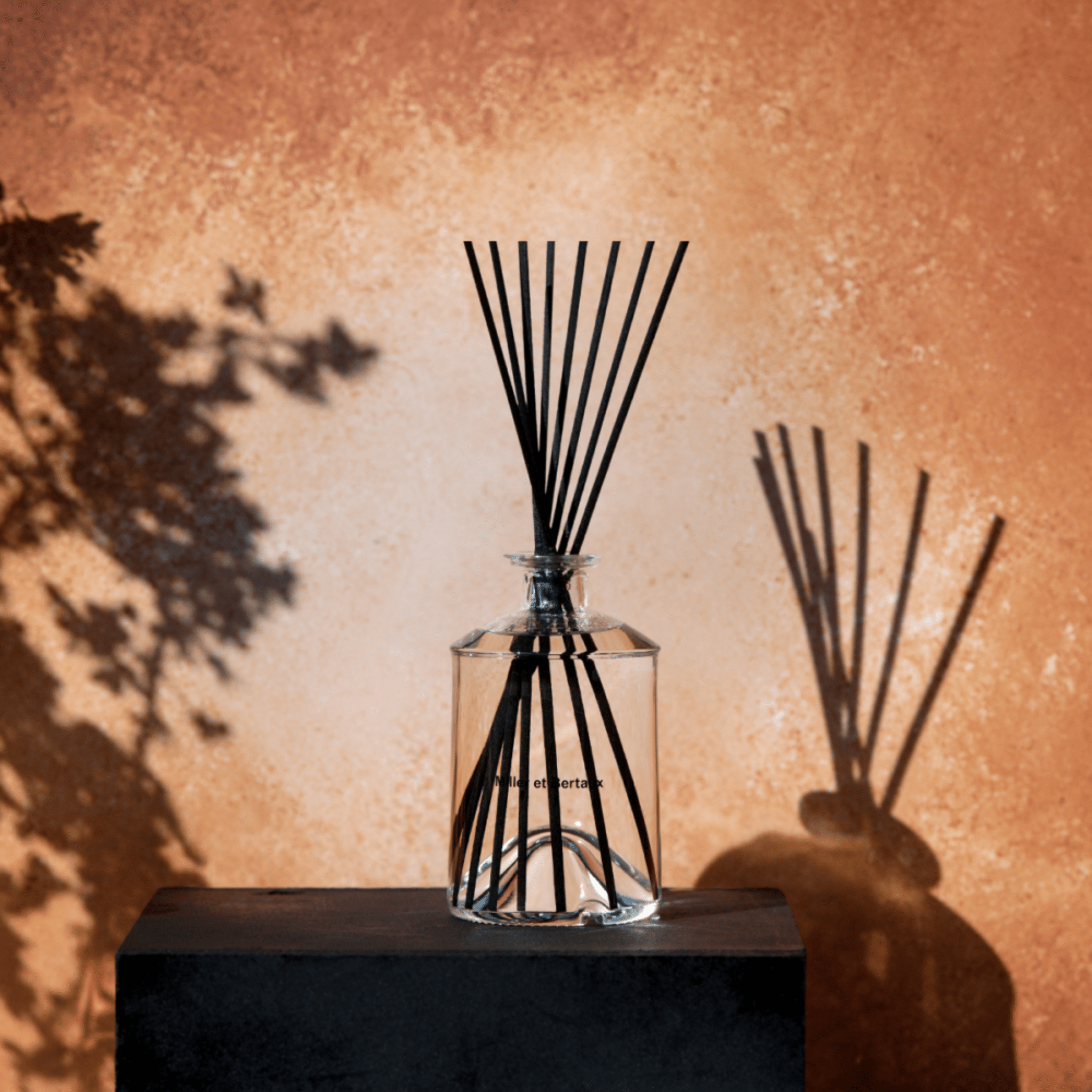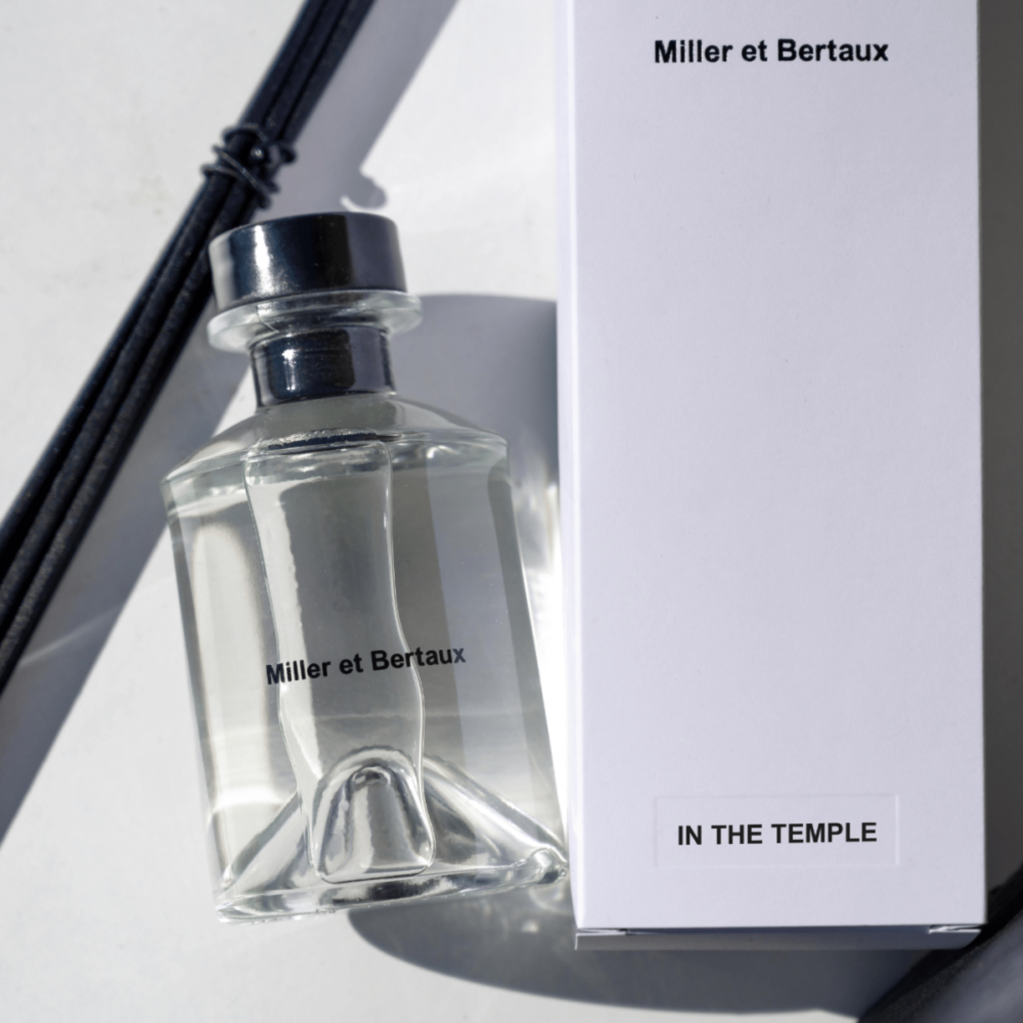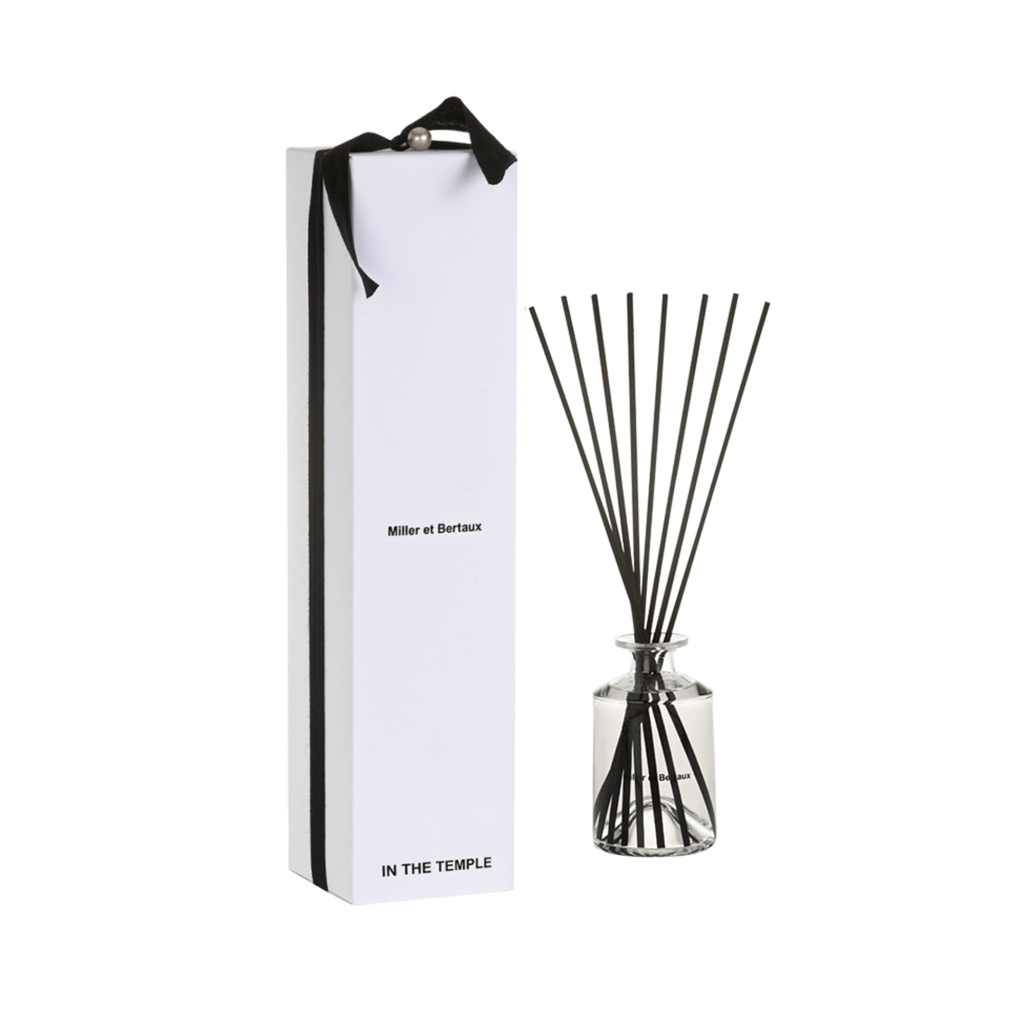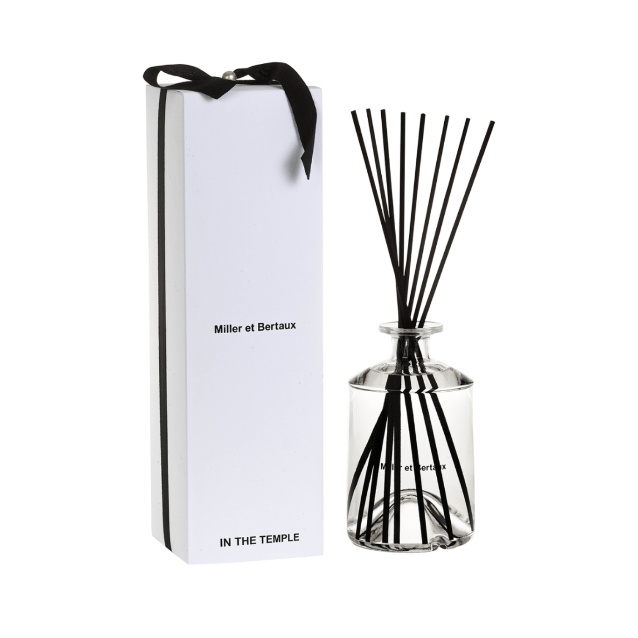 The Miller et Bertaux In the Temple diffuser will turn your home into a mystical, incense-filled temple surrounded by a lush, forested landscape. Take a deep breath, and feel the tensions of the day melt away. This soothing, woody scent is layered with notes of incense, sandalwood, patchouli leaves, smoked cedar and flowers.