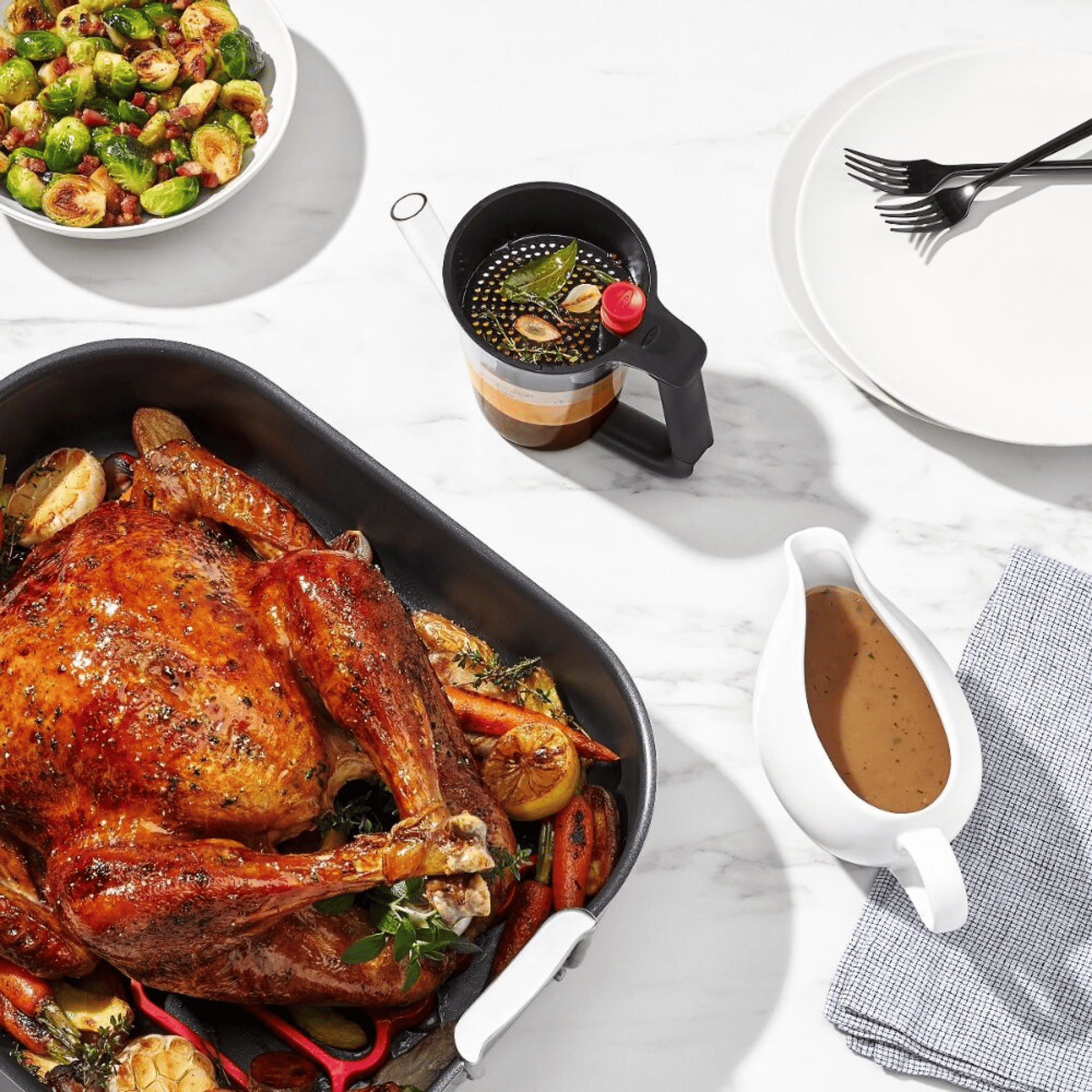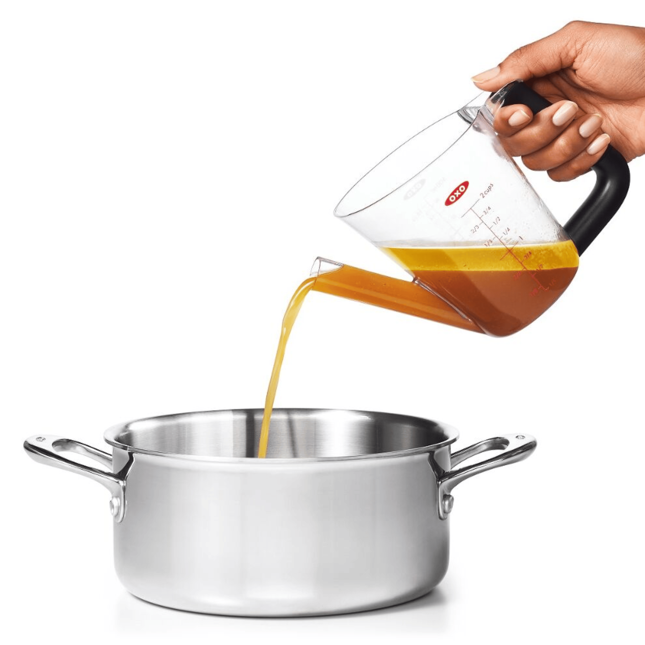 Keep all the flavour, without the fat! With the OXO Good Grips Fat Separator, gravy-making has never been easier. Place the stopper in the spout, pour pan drippings into the Fat Separator. The strainer filters even the tiniest bits and the fat will rise to the top. Remove the stopper and pour, the cooking liquid comes out first, leaving the fat behind. Measurement markings make following recipes simple, and the splatter shield prevents splashing while you pour.
