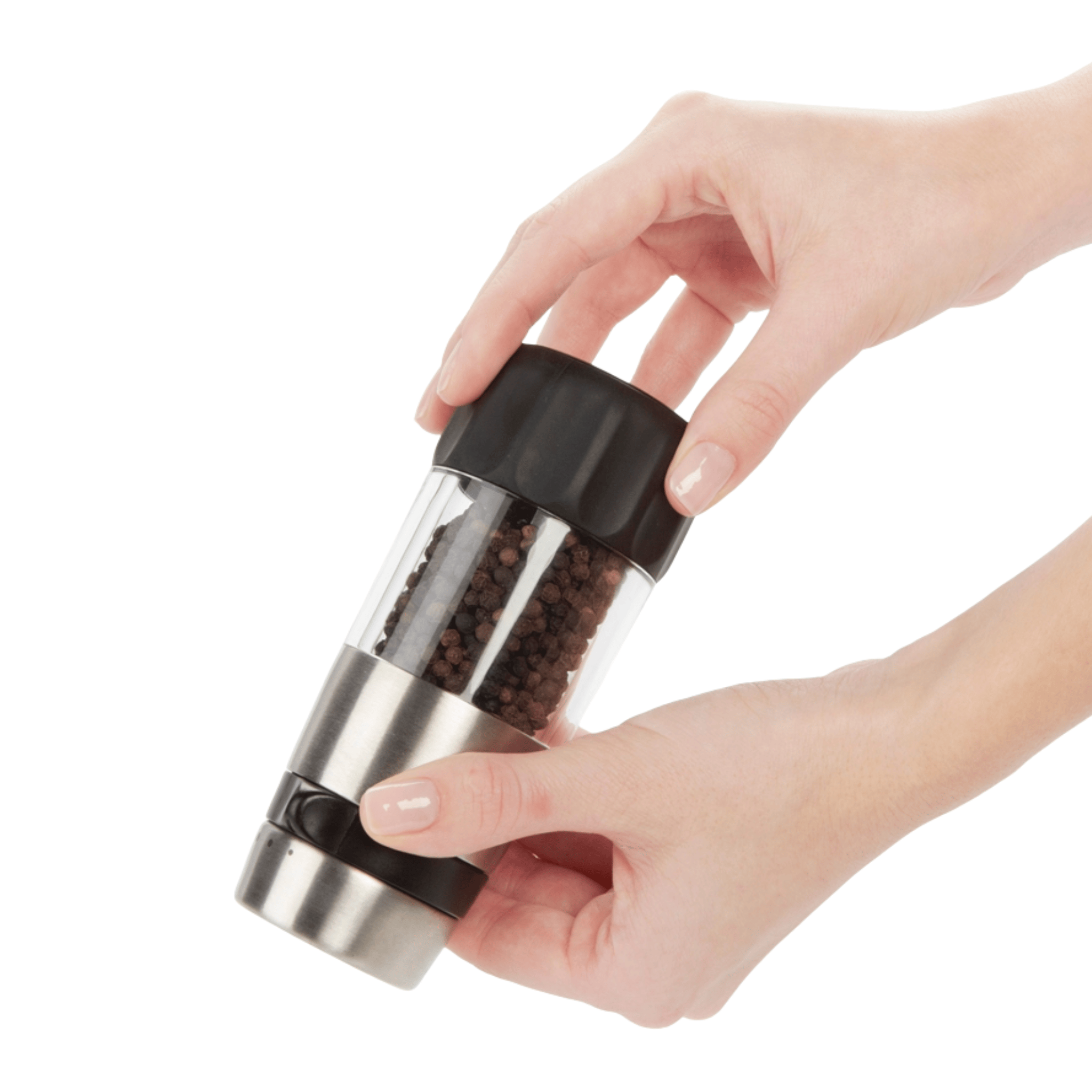 All the flavour, without the mess! OXO Good Grips Accent Mess-Free Grinders dispense from the top, for less mess on your counter and tabletop. Simply slide the tab to choose from five grind-size options. The durable ceramic grinder mechanism won't absorb flavours or odours, so it works for all types of peppercorns, salts, and whole spices. An airtight lid keeps spices fresh and dry while the non-slip grip on the base allows for easy, comfortable use. Comes pre-filled with coarse salt or peppercorns.