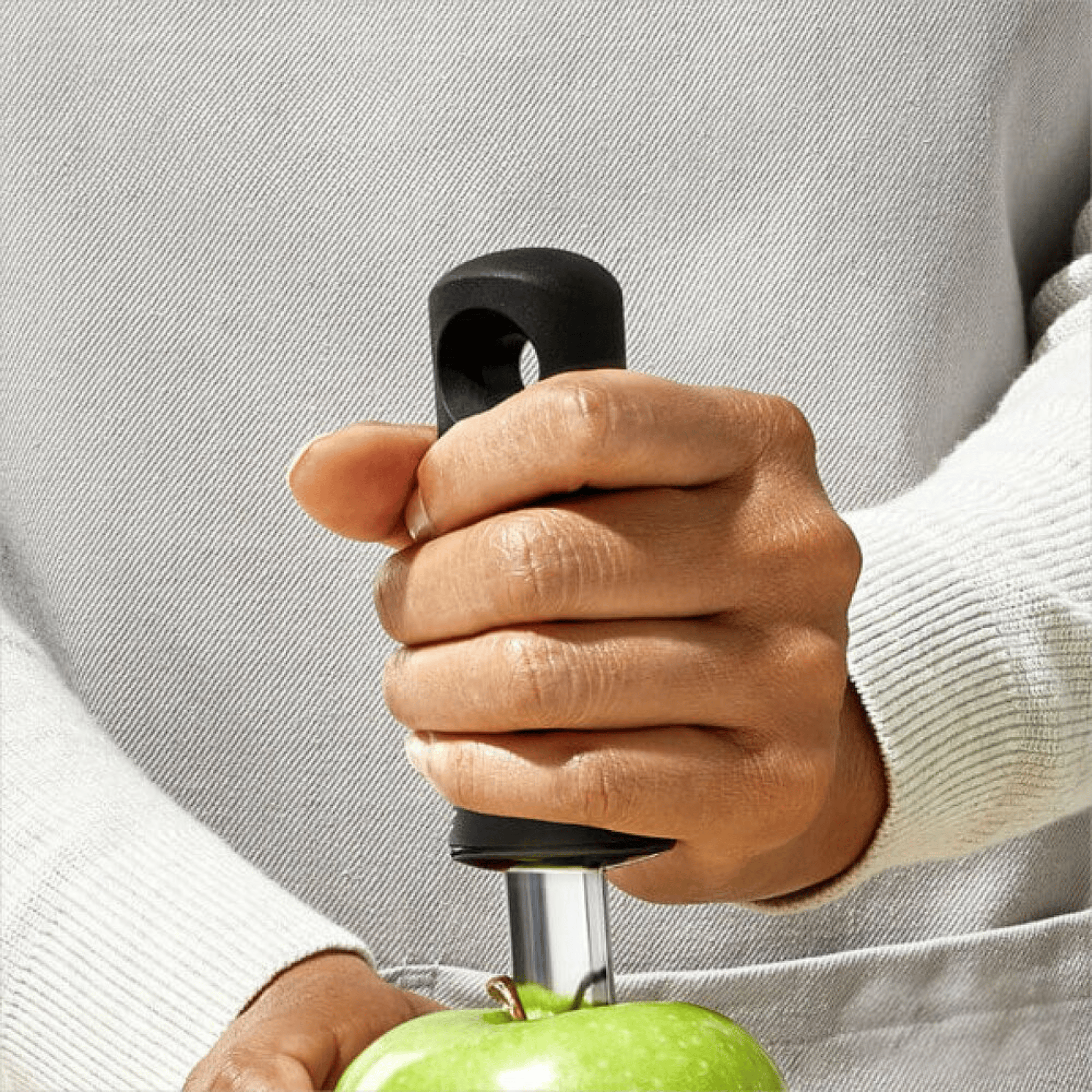 Just in time for pie and crisp season, the OXO Corer cuts smoothly through apples and pears so you can slice and dice your fruit with ease! The core comes off easily with a simple shake. The soft handle absorbs pressure so your hands don't have to.