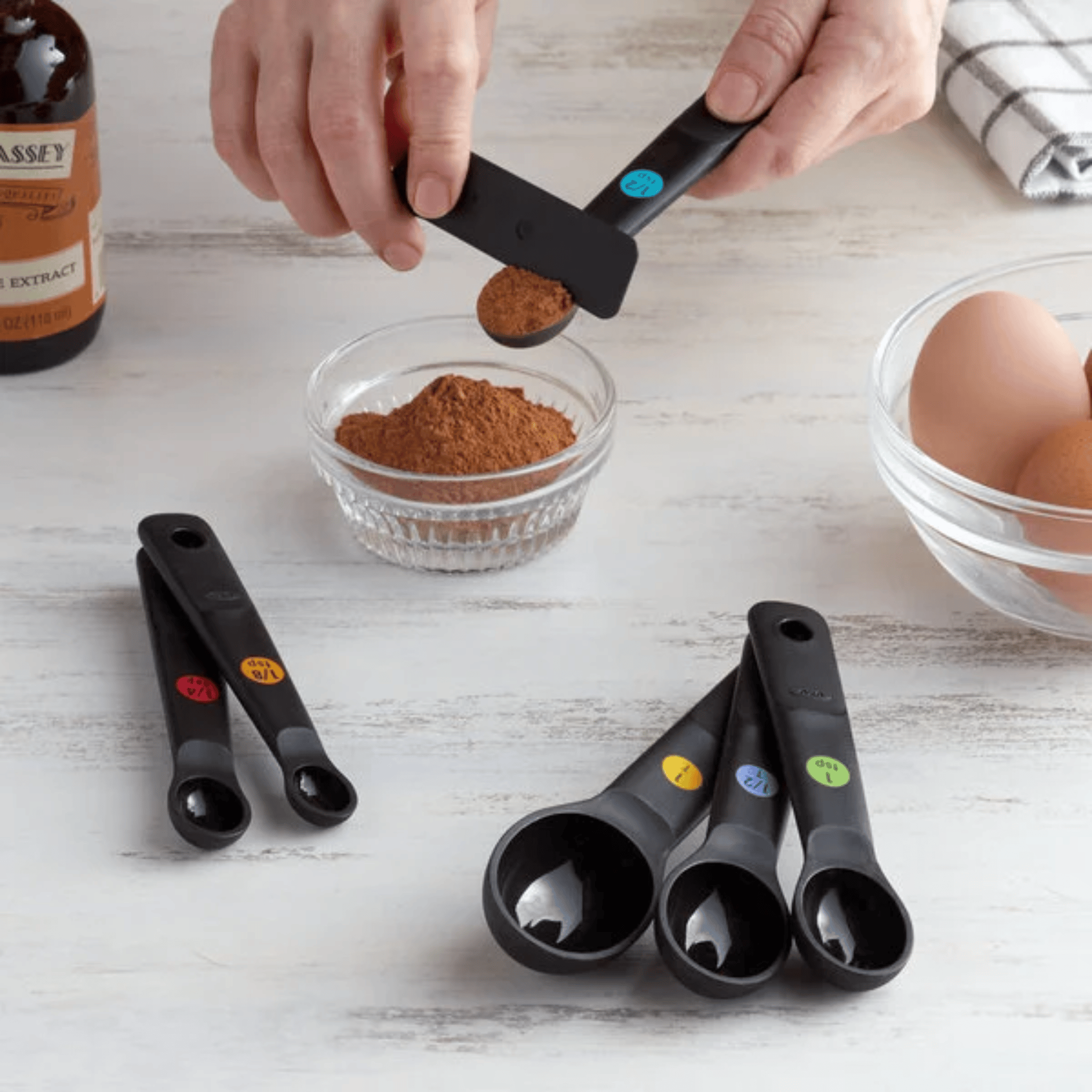 Get precise measurements every time with this 7-piece set of plastic measuring spoons. Clear markings make it easy to scoop and level small amounts of ingredients, while the durable construction stands up to everyday baking and cooking. A compact staple for any kitchen drawer.