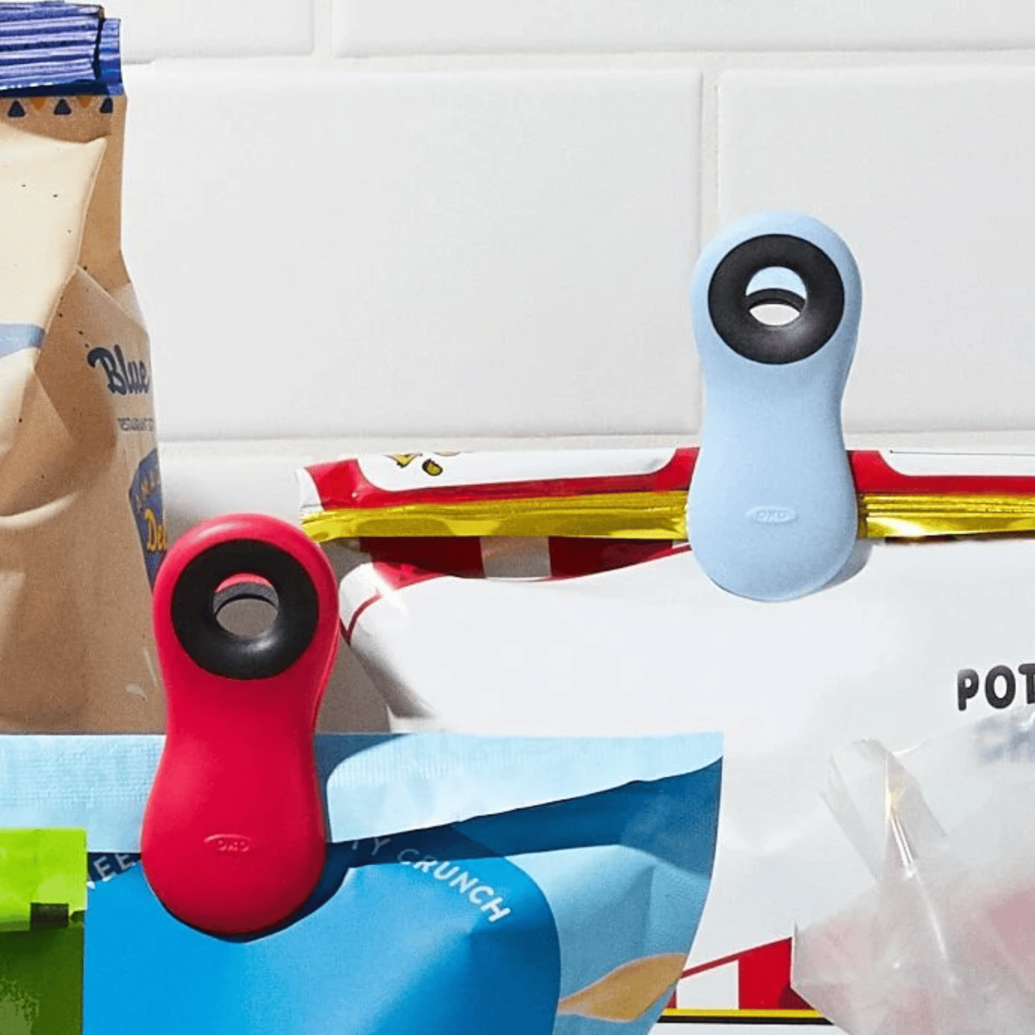 When snacks and cereal get a little unruly, OXO's sturdy, magnetic clips will rein them in! Use them to seal bags, hold notes and organize papers. Soft, comfortable grips and non-slip mouths hold items securely, while the holes allow the clips to be hung on a nail, hook, peg or line. The magnet on the back allows for convenient storage or display.