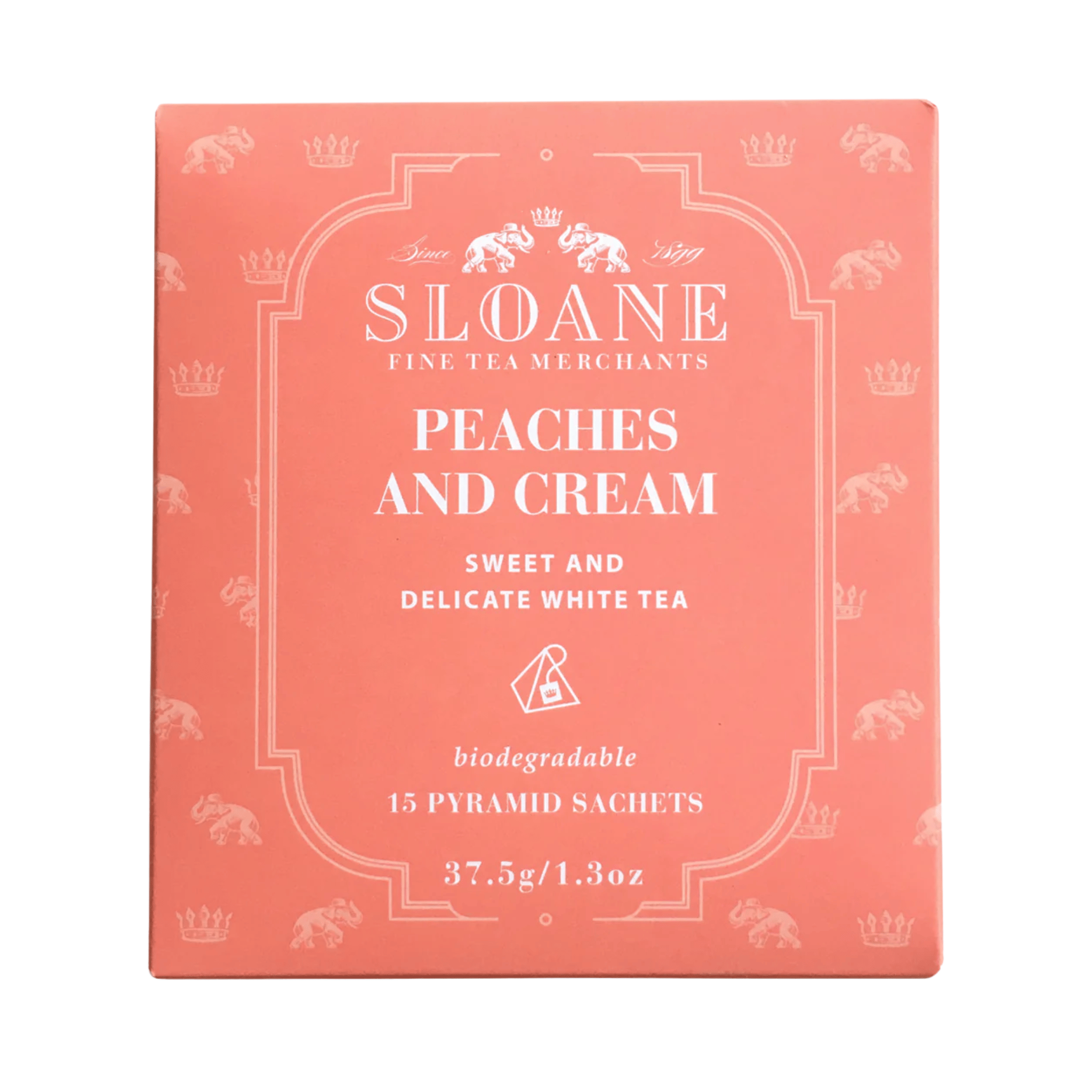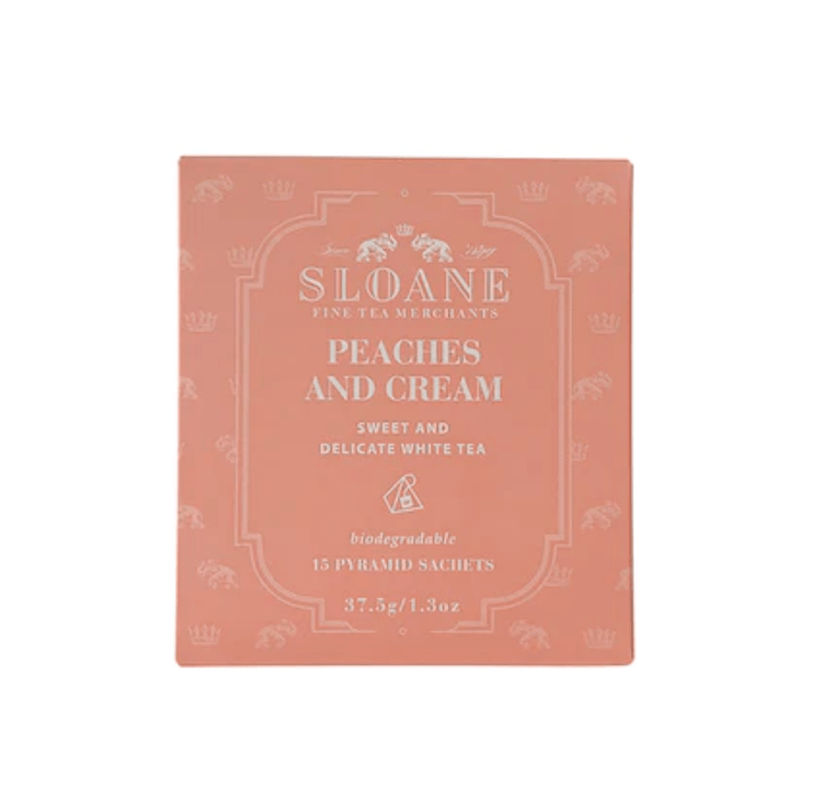 Sloane Tea works with an alliance of fine tea merchants who specialize in premium teas directly sourced from point of origin. Each box is filled with 15 tea sachets for your drinking pleasure. Peaches & Cream is a beautiful blend of white tea infused with the natural sweetness of peach and finished with a vanilla top note.