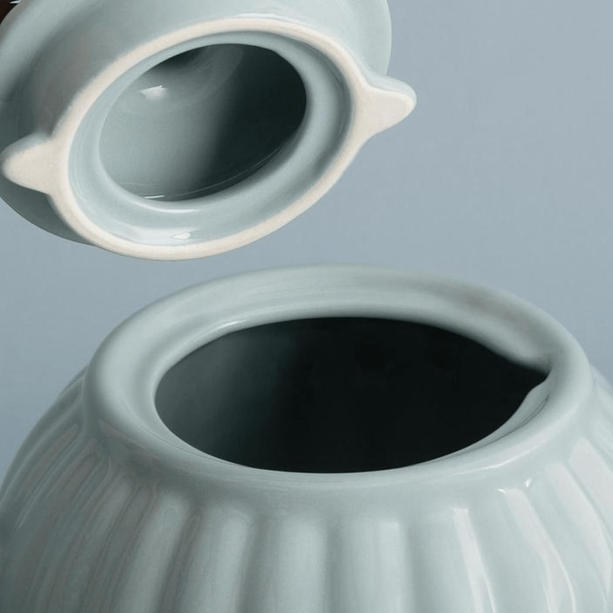 Elevate tea time with the Price & Kensington Luxe 6 Cup Teapot in Duck Egg. Featuring a beautifully fluted embossment and their signature ‘Betty’ shape, this teapot combines classic design with a contemporary twist. Crafted from durable stoneware, it retains heat longer and resists chipping, making it a practical and stylish addition to your kitchen. Whether used with or without the stainless steel filter, this teapot ensures a perfect cup every time.