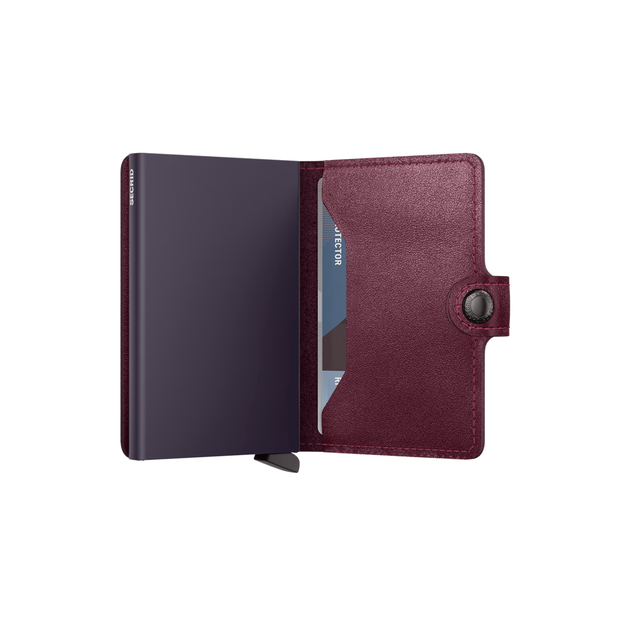 Crafted from smooth European leather, the Original MiniWallet keeps your cards secure while feeling great in your hand. Rich cranberry European cowhide wraps the black anodized aluminum CardProtector. The compact design keeps your chip cards safe from RFID scanners and identity theft. With one click all cards cascade out, making selecting the right one a breeze.