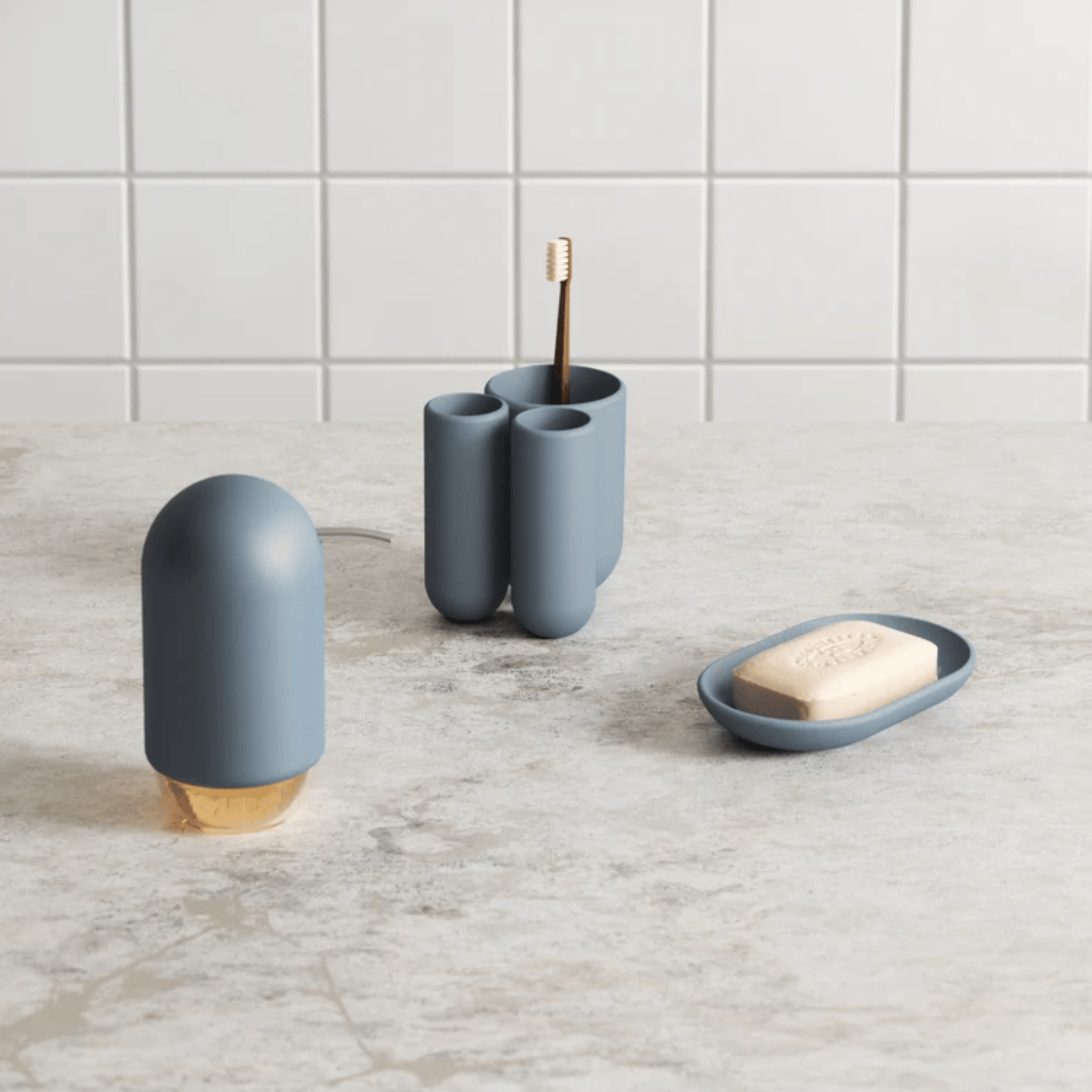 Not quite grey, not quite blue, the Touch Slate Collection by Umbra is finshed in a matte, soft-molded material that is delicate, smooth to the touch and pleasing to the eye. Easy to clean, highly durable and shatter-resistant, the Touch collection in perfect in the bathroom and kitchen.