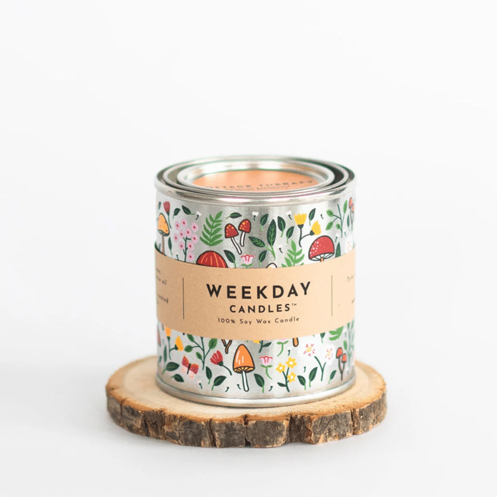 For an instant getaway from the hustle of the everday, the Cottage Therapy candle smells like a warm autumn night, full of stars, sitting around a bonfire - with notes of crackling sandalwood and smoky blackberry. Weekday Candles paint tins feature an adorable print, clean-burning soy wax and a crackling wood wick, for a candle that gives good looks and scents!