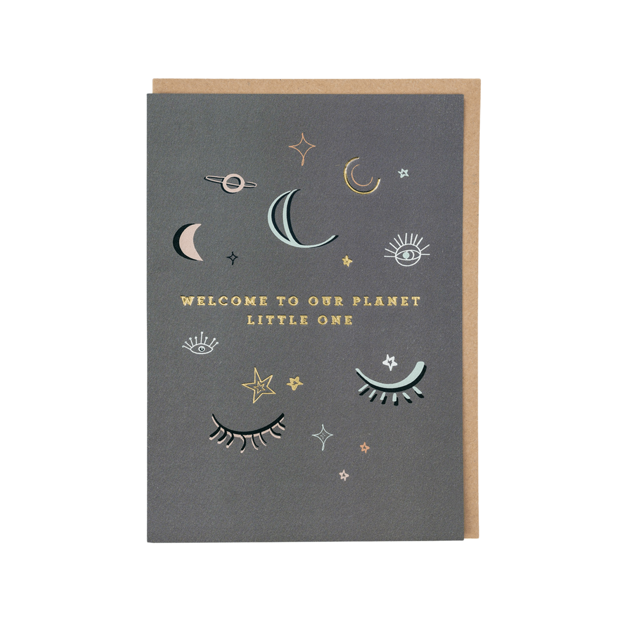 Welcome a new babe into the world with this beautiful, celestial card. Blank inside to personalise with your own message. For over 40 years, Cath Tate Cards have designed witty and wise cards that give vintage and retro images a sense of humour.